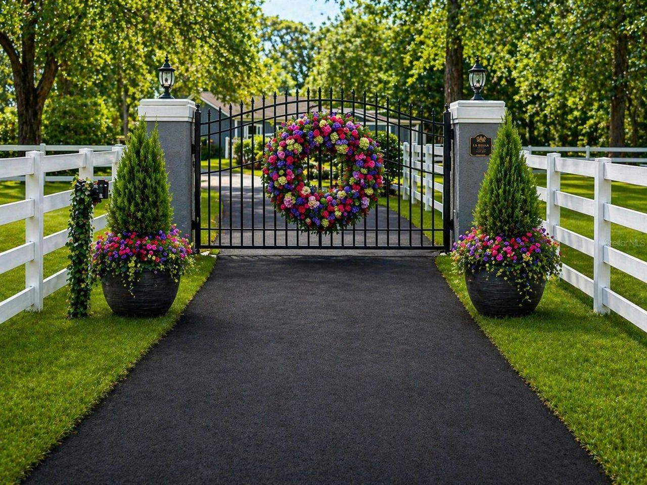 Private gated 7+ acre equestrian estate in the heart of Central Florida horse country. This beautifully maintained property has an oversized dressage arena, round pen, 8 large paddocks, and 2 barns. The 5-stall center-aisle barn features tack room, feed room, washer/dryer hookup, LED lighting, ceiling fans, and above-stall fly spray system. A separate 3-stall turnout/breeding barn adds flexibility. The 3BR/3BA residence has high ceilings, island kitchen, and a gunite pool opening to the patio for easy indoor-outdoor living. Recent improvements include fresh interior and exterior Sherwin Williams paint on the house and barns, newer roof, resurfaced pool, new well pump, Trane HVAC, updated lighting, new barn doors, blacktop driveway, new gate motor, and beautiful fencing. A rare opportunity for the serious equestrian or buyer seeking a private estate lifestyle with convenient access to Orlando and surrounding areas.Please note that the dressage riding arena was staged. All it needs is footing. The drain system is there. Some of the rooms are staged with furniture to give decorating ideas. The bathrooms are in the process of having grey cabinets and granite counter tops.